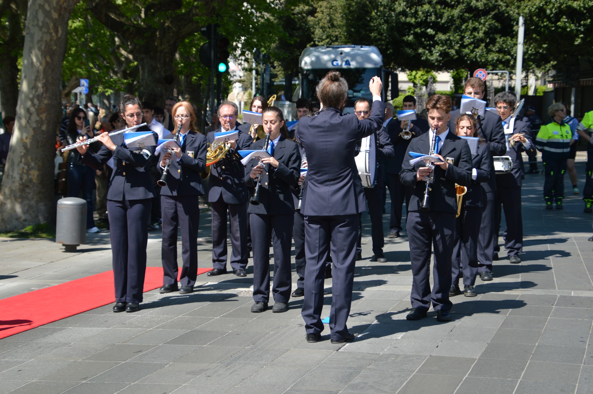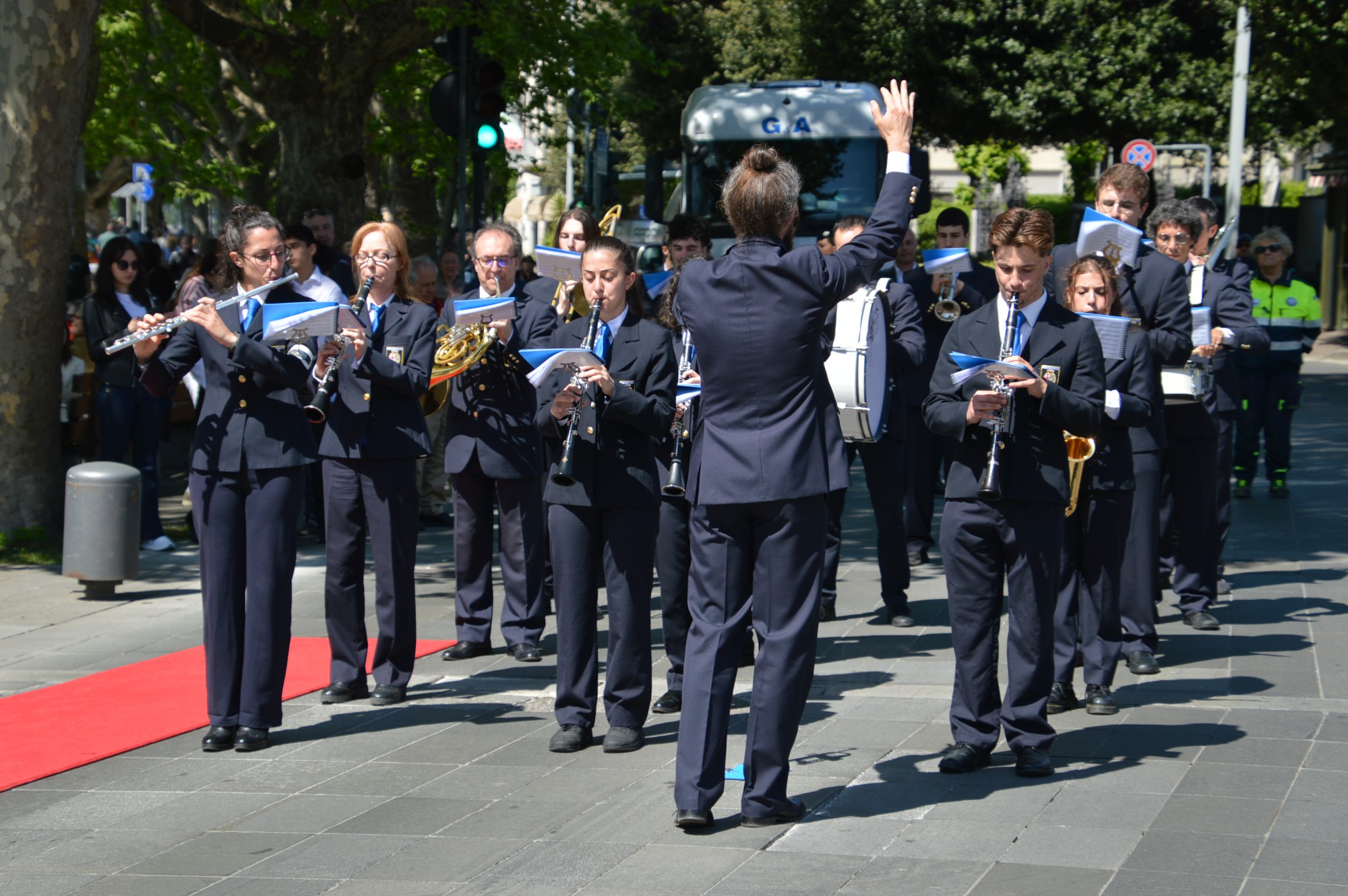 Dopo la funzione religiosa, si è snodato il consueto corteo, molto partecipato, con una piccola modifica di percorso per aggirare la piazza Garibaldi occupata dai mercatini francesi.