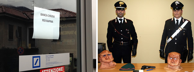 Entrambi gravati da recidiva specifica reitera, il primo anche infra quinquennale, Floriano Cazzaniga, classe 1965 e Antonio Baio, tre anni più giovane, originario di Fragagnano (TA) ma residente a Sesto San Giovanni hanno quest'oggi saldato il proprio conto con la Giustizia per quanto attiene l'ultimo episodio a loro ascritto ovvero il maldestro "assalto" alla filiale civatese della Deutsche Bank, dello scorso 16 dicembre, quando vennero braccati dai Carabinieri ancora prima di riuscire ad uscire dall'istituto di credito con il magro bottino (2.400 euro più altre banconote di valuta estera tra yen, sterline e franchi svizzeri) che erano riusciti a racimolare, minacciando con uno spadino artigianale e una fedele riproduzione di una Beretta modello 92 priva di tappo rosso, i dipendenti allo sportello.